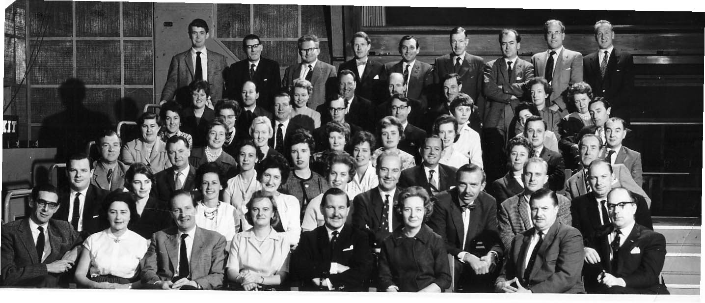 Fifth Row:- Pauline Kay, ?, ?, ?, Colin Farnell, Bob Gilbraith, Judy Loe, Eve Bowness, Syd Lotterby.